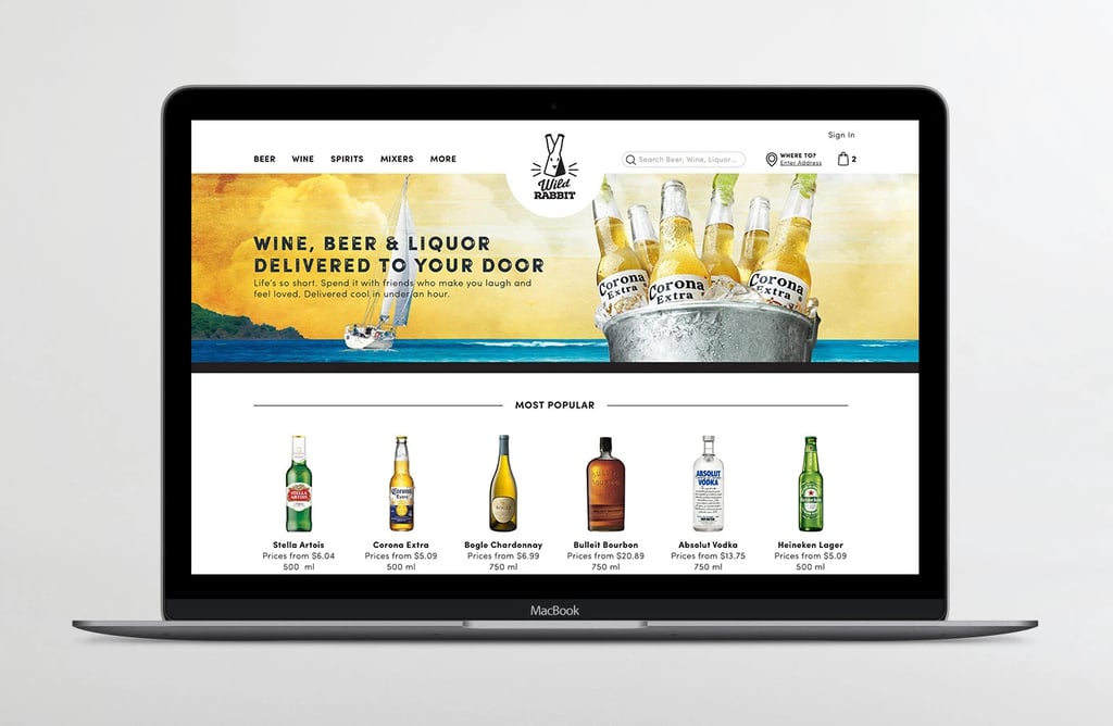 Brand identity for Wild Rabbit, an alcohol delivery service. The concept was built around the idea of a “cheers” moment — the gesture of clinking bottles before a drink — translated into a memorable visual system. The branding uses a minimalist illustrative style with strong negative space to create a bold, recognizable identity.